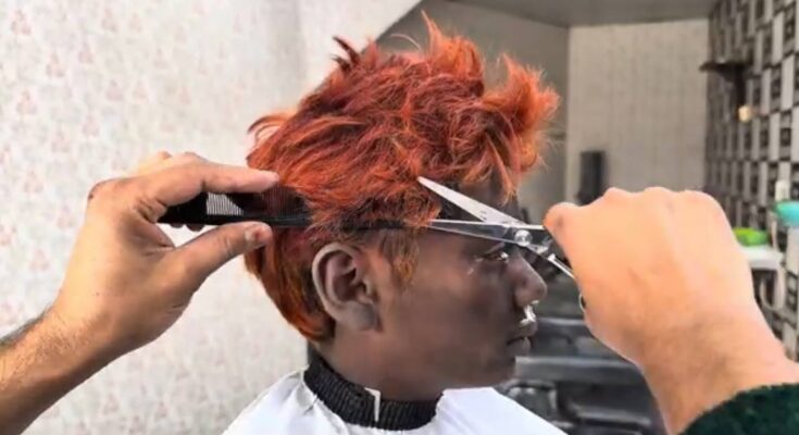 At first, the hairstylist carefully gave his hair a deep wash. The warm water, foamy shampoo, and gentle care seemed to give him a real sense of attention for the first time After washing, it became clear how beautiful his natural hair was. The stylist gradually cut away the tangled parts, creating a neat and stylish haircut Each movement transformed not only his appearance but also his self-confidence.