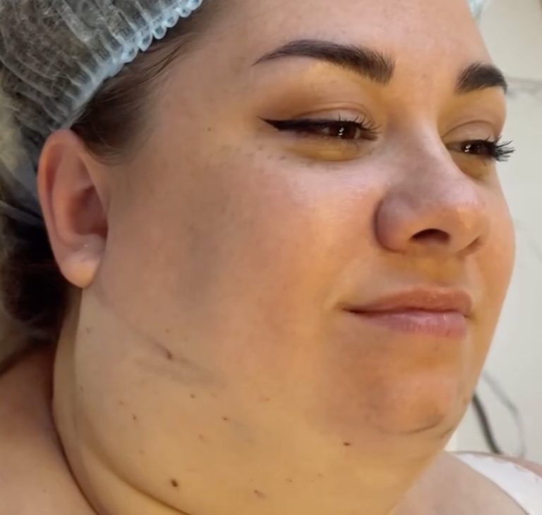 As the swelling subsided, her face transformed before everyone’s eyes. The fullness under her chin was gone, revealing a sleek, sculpted jawline that highlighted her natural beauty.